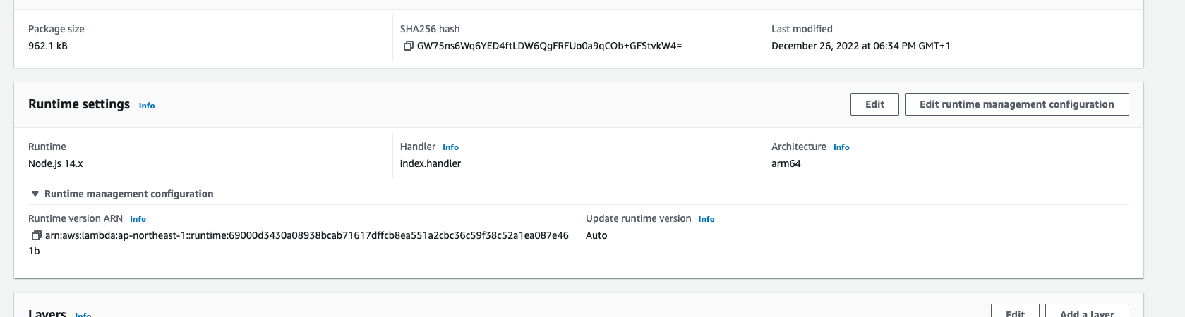 arn:aws:lambda:[region]::runtime:69000d3430a08938bcab71617dffcb8ea551a2cbc36c59f38c52a1ea087e461b. Replace [region] with the code for the AWS region (e.g. us-east-1) Long-term solution